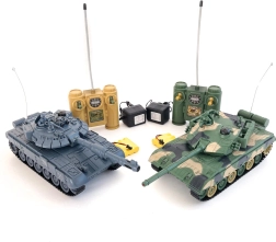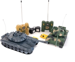 Goditi un'azione di battaglia tra carri armati con un set di due tank RC in scala 1:28. Ogni carro ha una torretta girevole a 330°, effetti sonori realistici, effetti luminosi, conteggio delle “vite” e affronta anche salite fino a 45°. I telecomandi operano su frequenze separate 27/40 MHz per un duello senza interferenze. Nella confezione sono incluse batterie ricaricabili per i carri e batterie per i telecomandi, così puoi giocare subito dopo l’apertura.