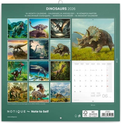 Calendario dei Appunti Dinosauri 2026 offre affascinanti illustrazioni di dinosauri preistorici accompagnati da un pratico calendario in sei lingue, che facilita la pianificazione e gli appunti quotidiani.