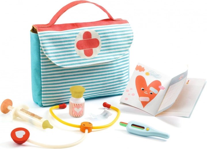 La valigetta del dottore DJECO è un regalo ideale per piccoli appassionati di medicina. Contiene tutto il necessario per giocare al dottore: un termometro che cambia colore, stetoscopio, siringa, flacone di medicine, benda e scheda medica.