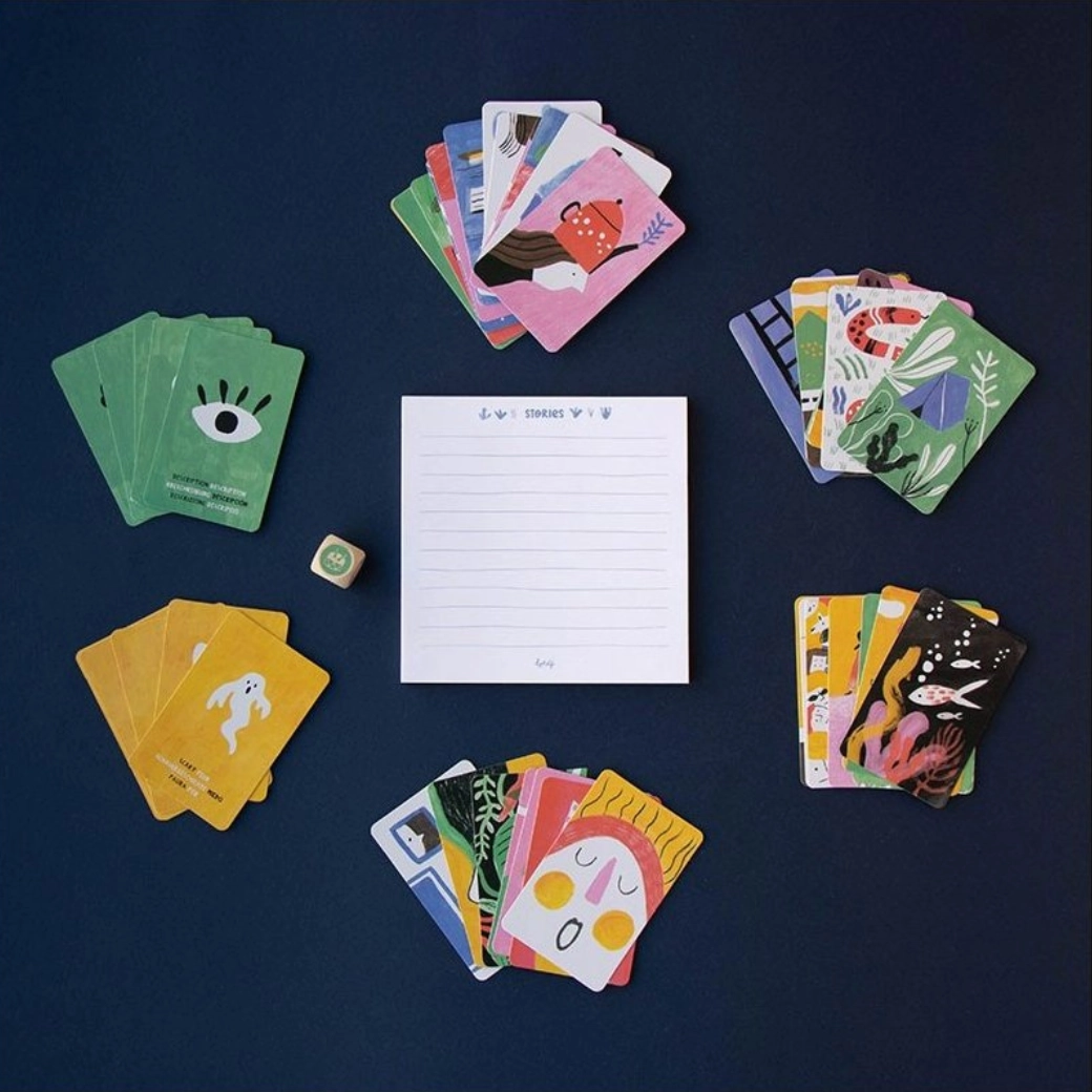Il gioco di carte Londji Storie è un ottimo modo per creare e raccontare storie collettivamente. I giocatori usano carte illustrate per creare storie avvincenti. Il gioco è diviso in tre blocchi di carte: storie, ritmi e generi. A ciascun giocatore viene dato un foglio e, in base al lancio del dado, le carte vengono girate per creare la storia.