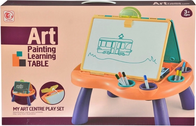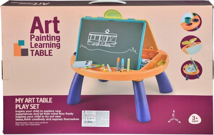 Lavagna per disegnare con tavolino, ideale per piccoli artisti e bambini dai 3 anni. Spazi di archiviazione pratici, dimensioni 47 x 41 x 45 cm.