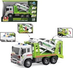 Questo Traino MaDe fa parte della popolare collezione ceca City Collection ed è realizzato in scala 1:16. Il veicolo è lungo 26 cm e grazie alla plastica di qualità resiste anche ai giochi più movimentati. È il giocattolo ideale per i bambini dai tre anni, che incoraggia la loro immaginazione e abilità motorie.