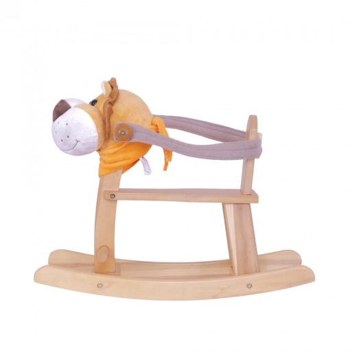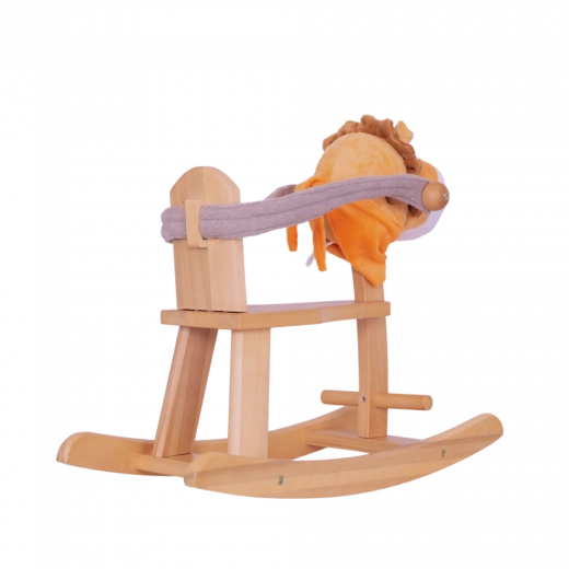 Giocattolo Leone a Dondolo è il giocattolo ideale per bambini dai 12 mesi. Grazie alla struttura in legno stabile, alla cinghia di sicurezza rimovibile e alla riproduzione della melodia dell'Alfabeto, offre un dondolio sicuro e divertente.