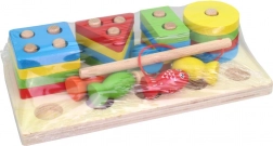 Questo puzzle in legno offre due giochi diversi che sostengono la pazienza e la concentrazione nei vostri bambini. La prima parte è composta da forme geometriche nei colori di base, che devono essere posizionate correttamente nei fori. La seconda parte porta divertimento con la pesca dei pesciolini colorati con una canna magnetica. Entrambi i giochi contribuiscono allo sviluppo della motricità fine e della coordinazione occhio-mano.