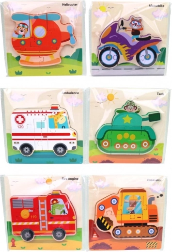 Puzzle in legno mezzi di trasporto attraggono con colori e motivi che entusiasmano ogni bambino. Sono ideali per lo sviluppo del pensiero logico e della motricità fine.