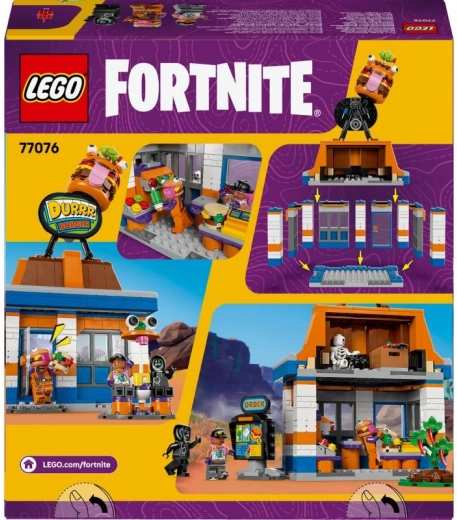 LEGO Fortnite Ristorante Durrr Burger per bambini dai 10 anni: 546 pezzi, 4 minifigure, costruzione modulare e outfit bonus tramite codice QR. Ottima idea regalo per gamer.