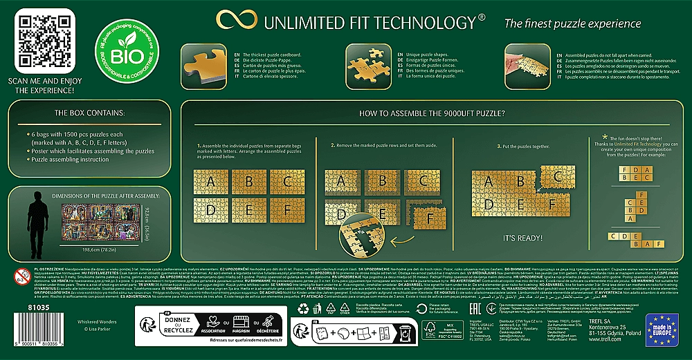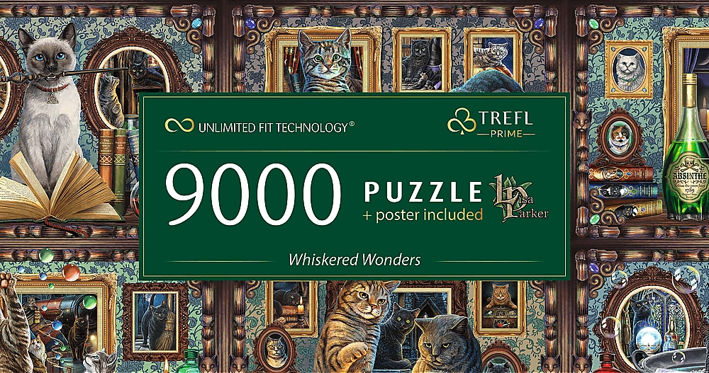 Puzzle di grande formato con affascinanti motivi di gatti e tecnologia innovativa Unlimited Fit Technology (UFT) per creare qualsiasi composizione di immagini.