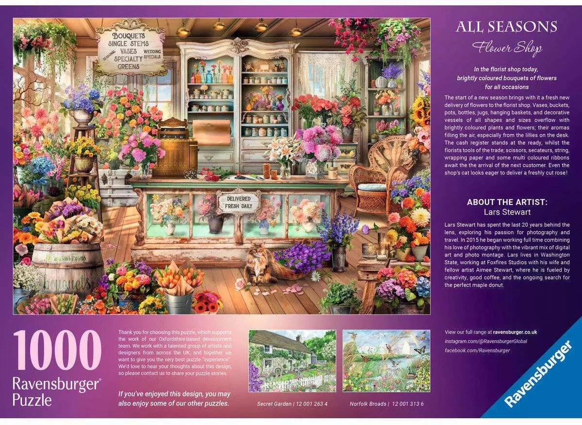 Componi il puzzle Fioristeria Romantica del marchio Ravensburger, un ottimo modo per godersi il relax e ammirare una bellissima immagine composta da 1000 pezzi.