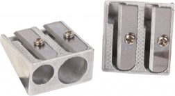 Robusta affilatrice in metallo ideale per uso scolastico e d'ufficio. Grazie al doppio foro puoi temperare sia pastelli sottili che più spessi.