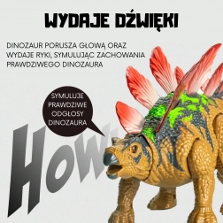 - Il dinosauro si muove avanti e indietro, imitando i movimenti di uno stegosauro vero;