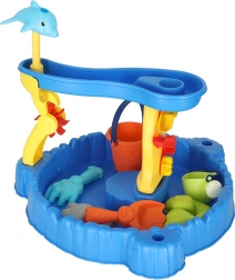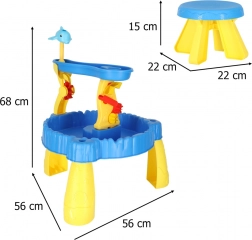 Tavolo da gioco 2 in 1 con fontana è ideale per il divertimento in casa e in spiaggia. Grazie al semplice montaggio è subito pronto all'uso. Il giocattolo sostiene l'integrazione sensoriale e motoria dei bambini.