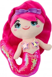 Sirena di Peluche con Coda di Paillettes in Rosa Intenso 28 cm