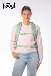 Lo zaino scolastico Skate Max Mentolo pesa meno di 1150 g e ha un sistema di schienale regolabile che offre fino a quattro diverse dimensioni. Ideale per studenti da 155 a 185 cm. Il materiale riciclato è idrorepellente e include elementi riflettenti per garantire la sicurezza.