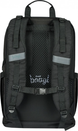 Lo zaino scolastico è dotato di schienale ergonomico e bretelle completamente regolabili sul petto e ai lati per un adattamento ottimale. Ha tre scomparti separati, un organizzatore interno e una tasca per computer portatile o tablet da 15 pollici. Il compartimento anteriore include un organizzatore pratico con un anello per le chiavi. Una tasca segreta sul fondo e le tasche laterali per le bottiglie completano il design. Con un peso di 1.200 g e una capacità di 29 l, è leggero e spazioso. Realizzato in materiale resistente all'acqua con elementi riflettenti per la sicurezza.