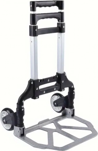 Questo carrello è dotato di una piattaforma pieghevole per carichi di dimensioni 39 × 21 cm, che può ospitare facilmente scatole, cassette e altri oggetti fino a un peso di 70 kg. Impugnatura telescopica con regolazione in altezza a tre livelli offre comfort di guida per persone di varie altezze. La stabilità complessiva e l'aderenza anche su superfici irregolari sono garantite dalle ruote resistenti con diametro di 120 mm.