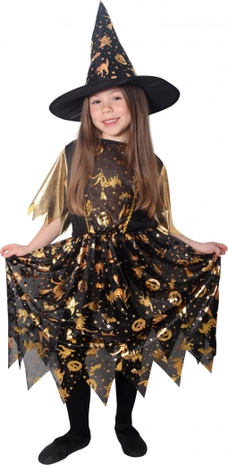 Cercate il costume perfetto per Halloween per vostra figlia? Questo costume nero-oro è la scelta ideale per ragazze di età compresa tra 4-6 anni (105-116 cm). L'abito nero con motivi dorati accentuati darà alla vostra bambina un aspetto da strega irresistibile.
