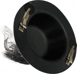 - è decorato con nastro nero, piume e tulle per un aspetto sofisticato
