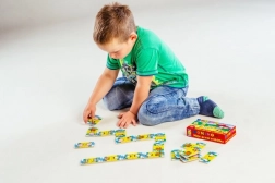 Questo set contiene 28 tessere robuste di domino con adorabili immagini di animaletti come elefante, maialino, gatto e cagnolino. Grazie ai colori vivaci e ai motivi intuitivi, il gioco è ideale per introdurre i bambini al principio dell’abbinamento e del riconoscimento.