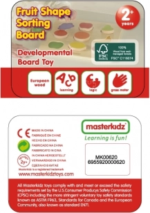 Ordina forme Frutta Colorata del marchio Masterkidz è un ottimo giocattolo in legno per bambini con molti scopi. Non solo garantisce divertimento, ma consente anche di imparare i nomi dei frutti e promuovere il consumo di frutta. Il bambino deve abbinare i vari frutti con i fori corrispondenti sulla tavola in legno, il che richiede concentrazione e analisi delle forme. Questa attività contribuisce anche allo sviluppo delle capacità di coordinazione.