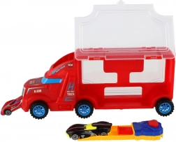 Il camion trasportatore in plastica offre ai bambini tanta azione e ordine: nel box trasparente possono portare due mini macchinine e gli accessori, e grazie alla rampa ribaltabile le caricano e scaricano con facilità. La ruota libera garantisce una guida fluida senza batterie e un controllo comodo.