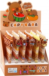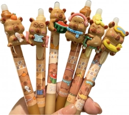 La penna automatica con tema capibara offre non solo funzionalità, ma anche un design divertente che sarà apprezzato da tutti gli ammiratori di questi animali. Sulla cima della penna c'è una figura decorativa 3D realizzata in gomma morbida, che può essere facilmente premuta, creando un elemento giocoso.
