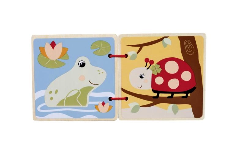 Adorabile libriccino illustrato in legno con 8 pagine e dimensioni compatte 8 × 8 cm, perfetto per piccoli esploratori. La struttura in legno resistente e i motivi piacevoli invitano a sfogliare a casa e in viaggio.