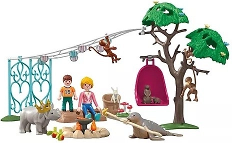 Il piccolo rinoceronte festeggia il compleanno e tutti sono invitati! La foca prepara deliziose mele al forno sul fuoco, il coniglietto si prende una pausa dopo le allegre gare e gli ospiti si riuniscono sotto la ghirlanda che si illumina al buio. Il set PLAYMOBIL offre tantissime possibilità per un gioco creativo di giorno e di notte.
