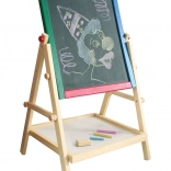 Questa lavagna in legno, bifacciale e multifunzionale, è un ottimo alleato per il gioco e lo studio di ogni giorno. I bambini possono esercitarsi a scrivere, disegnare e fare i primi conti sulla superficie bianca magnetica cancellabile a secco oppure creare con il gesso sulla tradizionale superficie nera. Grazie alla mensola spaziosa, tutti gli accessori sono sempre a portata di mano.