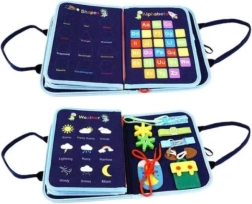 Scopri un giocattolo divertente e stimolante per i bambini: la busy book sensoriale a tema spazio di 2Kids Toys. Sostiene la motricità fine, il pensiero logico, la concentrazione e la percezione sensoriale. Grazie ad attività come bottoni, fibbie, cerniere, velcro e lacci i bambini allenano destrezza e autonomia. Il libro è morbido e leggero – ideale per i viaggi e per la casa, perfetto come regalo per bambini dai 3 anni in su.