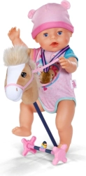 Il set BABY born per hobby horsing permette alle bambole di unirsi alla tendenza delle gare con il cavallino su bastone. La morbida testa in peluche è sicura e piacevole al tatto, perfetta per passeggiate quotidiane e discipline competitive. L’allenamento divertente è assicurato dalla simpatica paperella Berta, che dona al gioco un carattere giocoso.