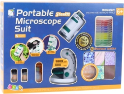 Scopri il microcosmo in modo divertente con il compatto microscopio 2in1 per bambini. Offre ingrandimenti 60x e 180x, illuminazione LED nel microscopio e nello stativo e messa a fuoco fluida. Il ricco set di accessori, tra cui il supporto per telefono, preparati pronti e vetrini vuoti, rende questo kit un regalo ideale per i piccoli esploratori.