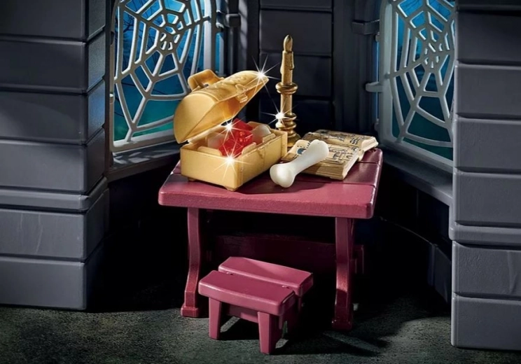 Il promo set PLAYMOBIL include rovine di castello accuratamente progettate, 3 figure, una cassa/tomba, diversi ragni, pipistrelli e altri elementi spettrali che aggiungono tensione e divertimento al gioco.