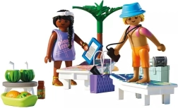 Parti verso il sole con il set di gioco PLAYMOBIL, che porta con sé una rilassante storia estiva. La coppia si gode il relax sui lettini all'ombra della palma, sorseggiando bevande rinfrescanti e sgranocchiando frutta succosa. Grazie alla stampa reattiva ai raggi UV sulla figura maschile, alla luce solare reale appare l'effetto di scottatura – un dettaglio divertente e istruttivo per i bambini.