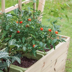 Questa fioriera mobile è realizzata in legno di pino impregnato, resistente agli agenti atmosferici e con lunga durata, mantenendo un bell'aspetto per molti anni. Grazie alle ruote si sposta facilmente al sole o all'ombra e la lavagna a gessetti frontale è utile per etichette delle piante, piani di irrigazione o note dei bambini.