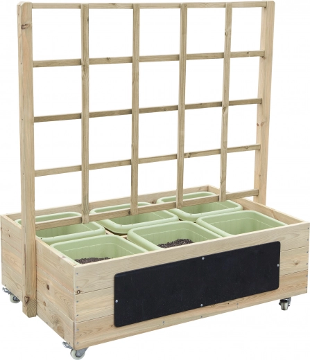 Scopri la robusta fioriera in legno su ruote della serie CLASSIC WORLD EDU – ideale per giardino, asilo o area giochi. Include 6 vasi robusti, un'archetta a grigliato per piante rampicanti e una lavagna a gessetti per appunti. Prendendosi cura delle piante, i bambini sviluppano responsabilità, pazienza e comunicazione, imparando in modo naturale biologia e giardinaggio attraverso il gioco.