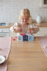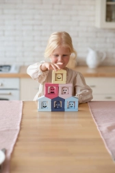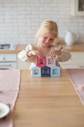 Scopri il set di costruzioni in legno CUBIKA in delicate tonalità pastello con 30 elementi, inclusi mattoncini con emoticon. Assembla sei casette, ognuna con il proprio abitante nel colore corrispondente: durante il gioco i bambini esercitano naturalmente il riconoscimento dei colori, la motricità fine e il pensiero logico. Il giocattolo è realizzato in acero e faggio di alta qualità, con vernici a base d’acqua sicure e conformi alla norma EN 71. 30 pezzi, colori pastello, apprendimento dei colori, materiali sicuri, da 24 mesi, prodotto in Europa.