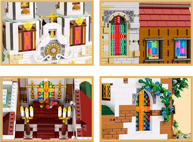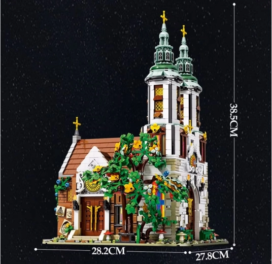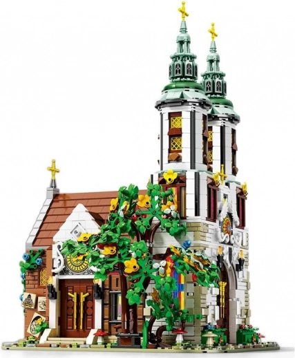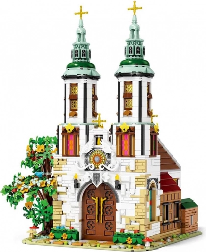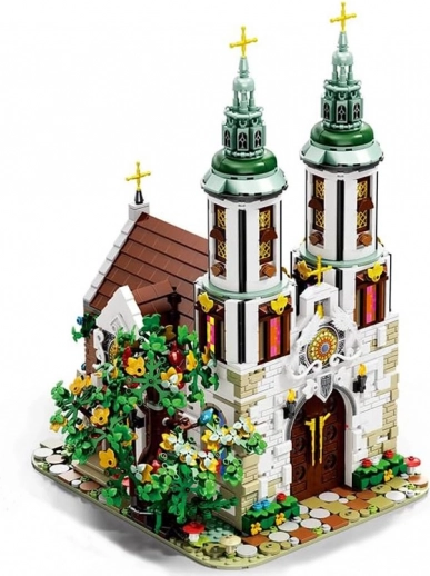 Questo avanzato set di costruzione riproduce fedelmente il profilo e la decorazione di uno dei più antichi templi di Cracovia. Spiccano la coppia di alte torri con croci dorate, il portale dettagliato, le vetrate realizzate con mattoncini colorati trasparenti e i ricchi elementi esterni con vegetazione. L’interno è abbellito da un altare con dettagli dorati, candelabri, fiori e panche.