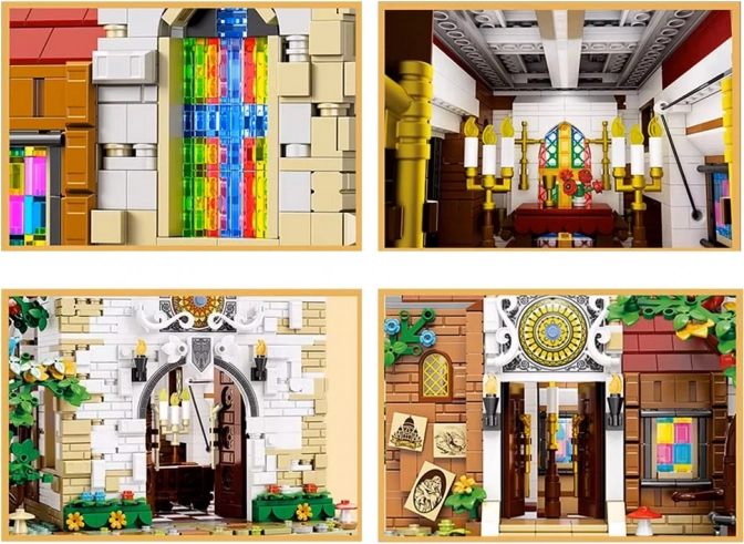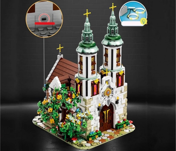 Grazie all’illuminazione LED, il modello acquisisce un fascino unico: la luce filtra attraverso le vetrate e mette in risalto le linee architettoniche. Il set è suddiviso in bustine per un montaggio ordinato e include un manuale illustrato e adesivi decorativi per un look autentico.