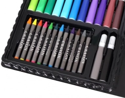 Il set include un totale di 86 pezzi, tra cui matite pastello, pennarelli, pastelli a cera e ad olio per creatività illimitata.