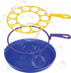 2 cerchi (per bolle grandi e per molte piccole bollicine), ciotola per la soluzione, soluzione per bolle