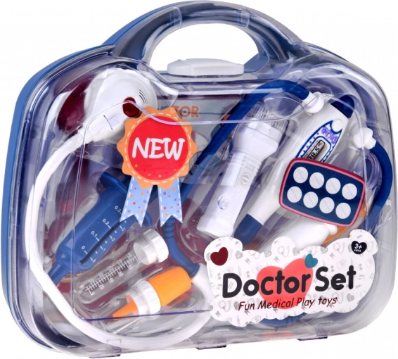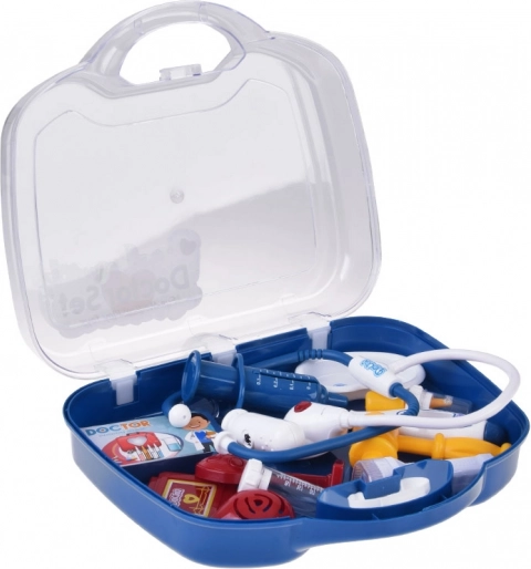 - Stetoscopio (con suono), torcia luminosa, termometro digitale (con indicatore girevole), siringa con pistone mobile, martelletto riflessi, otoscopio/torcia, specchietto laringologico, provette e pipetta, bacinella “a rene”, tessera DOCTOR, scatolina “medicine”, altri piccoli accessori