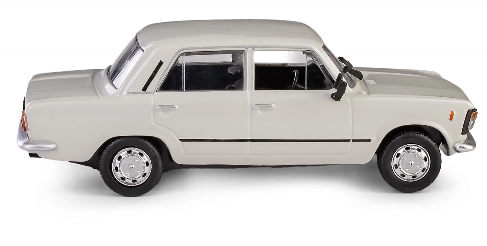 Questo modello autentico si ispira alla versione aggiornata MR ’75 della famosa “grande Fiat”, prodotta in seguito come FSO 125p. Si distingue per proporzioni realistiche, dettagli cromati dei paraurti, fari sagomati con precisione e interni visibili attraverso i finestrini trasparenti. La vernice color cenere sottolinea il carattere classico dell’auto.