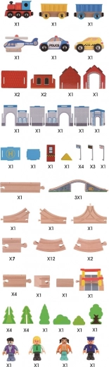 Scopri la ricchissima pista ferroviaria in legno con 80 pezzi, che sviluppa motricità fine, creatività e fantasia. I bambini si divertiranno a viaggiare sul ponte, attorno alla stazione di polizia con eliporto, attraverso la sbarra al passaggio a livello e molte altre scene. La lavorazione in legno di qualità con dettagli colorati e la compatibilità con altre piste ferroviarie in legno garantiscono ore di divertimento ogni giorno.