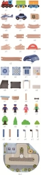 Questa moderna ferrovia in legno a tema città vivace offre ai bambini tutto il necessario per ore di gioco creativo. Il set include un trenino blu con tre vagoni, binari vari tra cui un cavalcavia sopraelevato e una spaziosa stazione con pensilina. Non mancano l'auto della polizia, personaggi, segnali stradali, lampioni, alberi e altri accessori che creano l'atmosfera di una vera città.