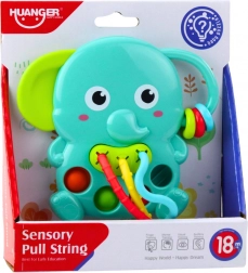 - Sonaglio sensoriale elefante, perline e anelli mobili, cordicelle colorate da tirare