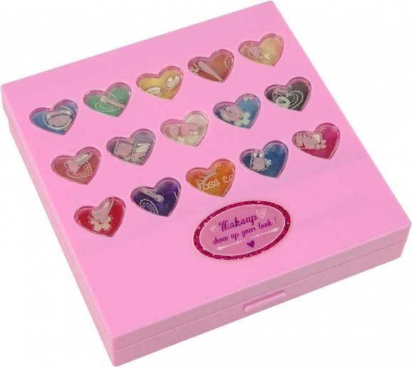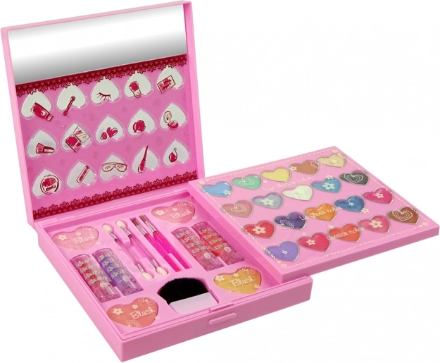 Una magica palette rosa per piccole fashioniste offre tutto per il primo make-up sicuro: ombretti, lucidalabbra e rossetti, fard e smalti per unghie. Grazie ai cuoricini trasparenti è visibile la vivace gamma di colori, mentre il design compatto mantiene insieme tutti gli accessori cosmetici. I cosmetici sono senza parabeni, si rimuovono facilmente con acqua tiepida e sapone e rispettano la norma EN 71 e la certificazione CE.