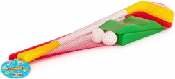 Il set per bambini include mazze di plastica con testine rosse e gialle, leggere e facili da maneggiare.