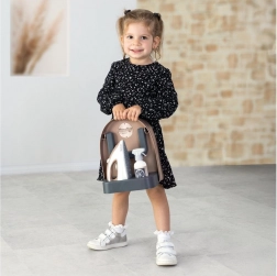 Il set da stiro pieghevole MiniTefal per bambini offre un gioco domestico realistico in un formato compatto. Include un asse da stiro pieghevole, un ferro giocattolo TEFAL con pulsante clic e un vaporizzatore. Grazie alla facile sistemazione è ideale per spazi ridotti e, con il suo design moderno, farà felici bambini e genitori.
