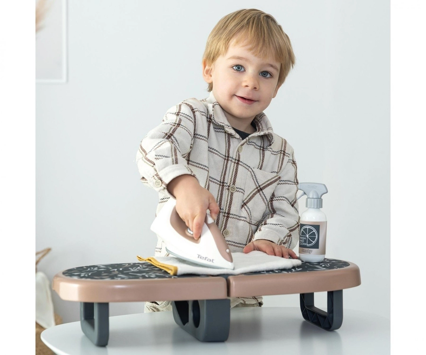 - Asse da stiro pieghevole, ferro giocattolo TEFAL con pulsante a clic, boccetta con vaporizzatore per bambini