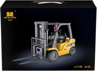 Modello realistico di carrello industriale in scala 1:10 che unisce una robusta struttura in metallo e plastica di qualità per una lunga durata. Grazie al radiocomando a 2,4 GHz offre marcia fluida avanti/indietro, sterzata e sollevamento e abbassamento funzionale delle forche. Effetti luminosi e sonori e pneumatici in gomma con ottima aderenza aumentano realismo e divertimento.